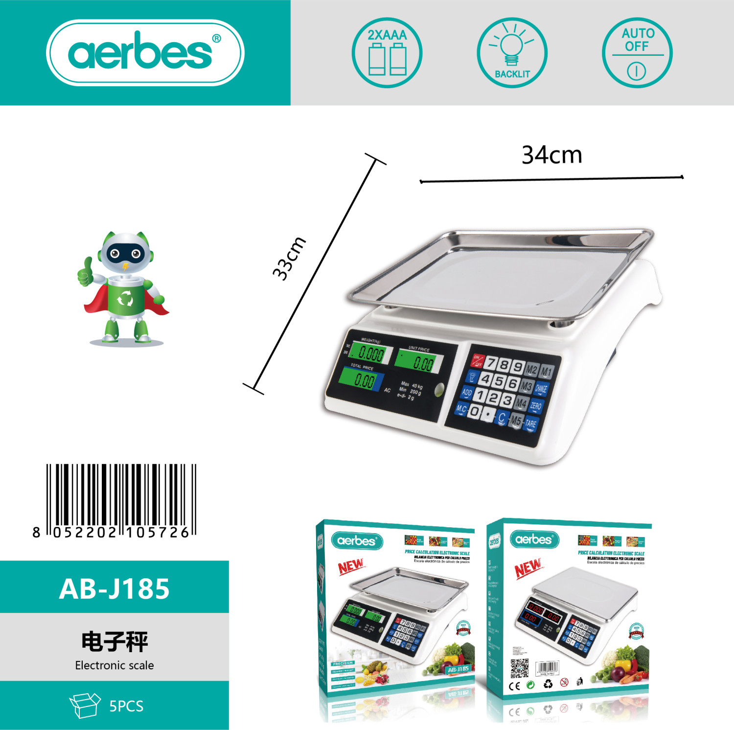 With its compact but solid design, the AB-J185 is perfect for users who need a reliable, easy-to-use electronic scale for everyday weighing tasks.