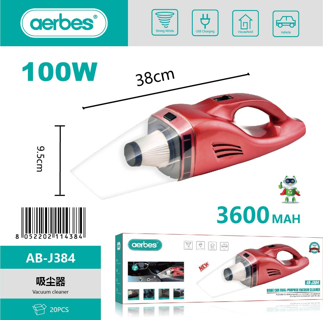 The AB-J384 Cordless Car Vacuum Cleaner is a powerful and efficient cleaning tool designed for vehicles, homes, and offices. Powered by dual rechargeable batteries (1800mAh ×2), it delivers long-lasting performance and strong suction for deep cleaning.
