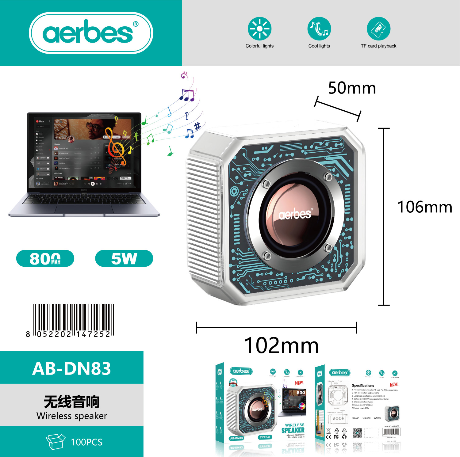 The AB-DN83 Portable Bluetooth Speaker is a reliable and stylish wireless sound device designed for smooth and clear audio performance. With Bluetooth connectivity, it allows quick pairing with smartphones, tablets, laptops, and other compatible devices.