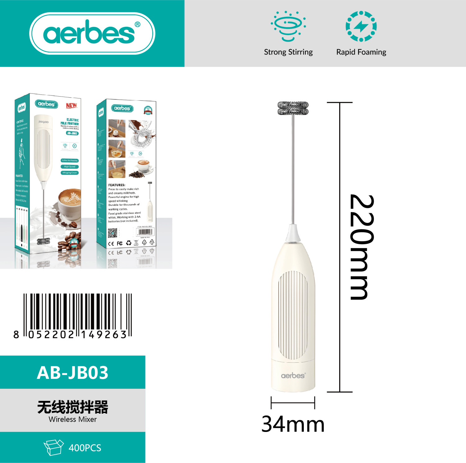 The AB-JB03 Battery-Operated Hand Mixer is a compact and convenient kitchen tool designed for effortless mixing and egg beating. Powered by dry batteries, this portable mixer allows you to prepare eggs, cake mixtures, cream, and light batters without needing a power outlet.